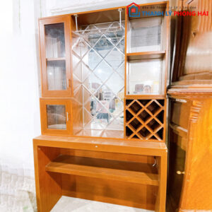 Mô tả: Tủ rượu cũ với thiết kế hài hòa giữa phong cách truyền thống và hiện đại. Phần trên của tủ làm từ gỗ tự nhiên, được chạm khắc tỉ mỉ, tạo điểm nhấn sang trọng cho không gian. Phần dưới của tủ được làm từ MDF chất lượng, cung cấp không gian lưu trữ rộng rãi và tiện lợi. Đây là lựa chọn lý tưởng cho những ai đang tìm kiếm một mẫu tủ rượu vừa đẹp vừa bền.