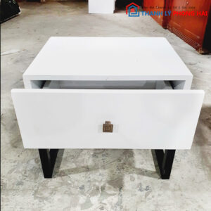 Mô tả: Kệ tủ đầu giường màu trắng hiện đại, thiết kế đơn giản với chân kim loại sơn đen, tạo cảm giác vững chắc và sang trọng. Kệ có ngăn kéo rộng rãi giúp lưu trữ đồ dùng cá nhân một cách tiện lợi. Kích thước nhỏ gọn, phù hợp đặt cạnh giường trong không gian phòng ngủ hoặc phòng khách. Bề mặt phẳng có thể dùng để đặt đèn ngủ, sách hoặc vật dụng trang trí.