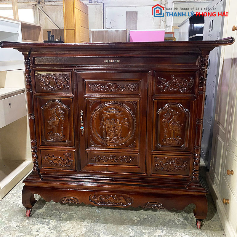 Tủ Thờ Tràm 1m5 Chạm Khắc Phúc Lộc Thọ Mới 99% – Thiết Kế Bề Thế