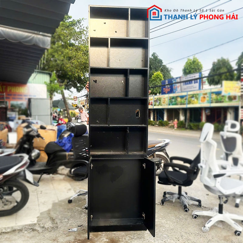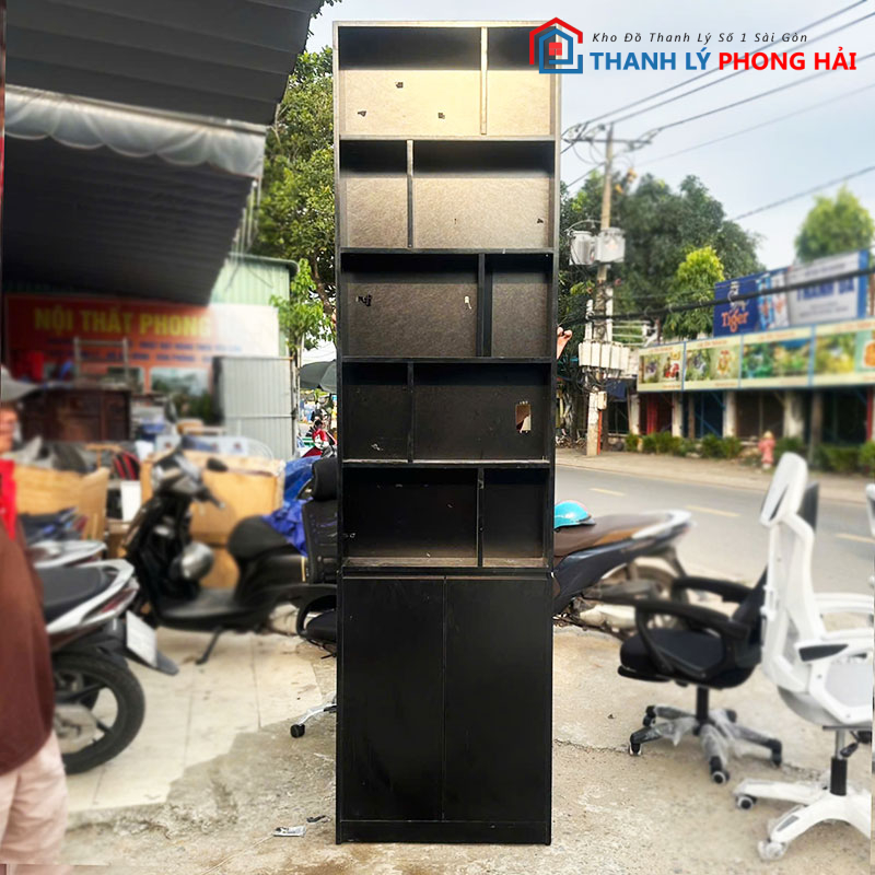 Tủ Trưng Bày 70cm Gỗ Sơn Đen Cũ – Thiết Kế Tối Giản, Nhiều Ngăn