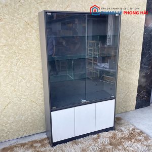 Mô tả: Mẫu tủ trưng bày gỗ đẹp, thiết kế đơn giản cho không gian trưng bày hiện đại, rộng rãi. Tủ gỗ 4 tầng với cửa kính đóng mở tiện lợi, hạn chế bụi bẩn, bảo vệ sản phẩm bên trong an toàn. Chất liệu gỗ MDF có lớp chống trầy xước cao cấp, chống ẩm, chống thấm nước, bền bỉ theo thời gian sử dụng.